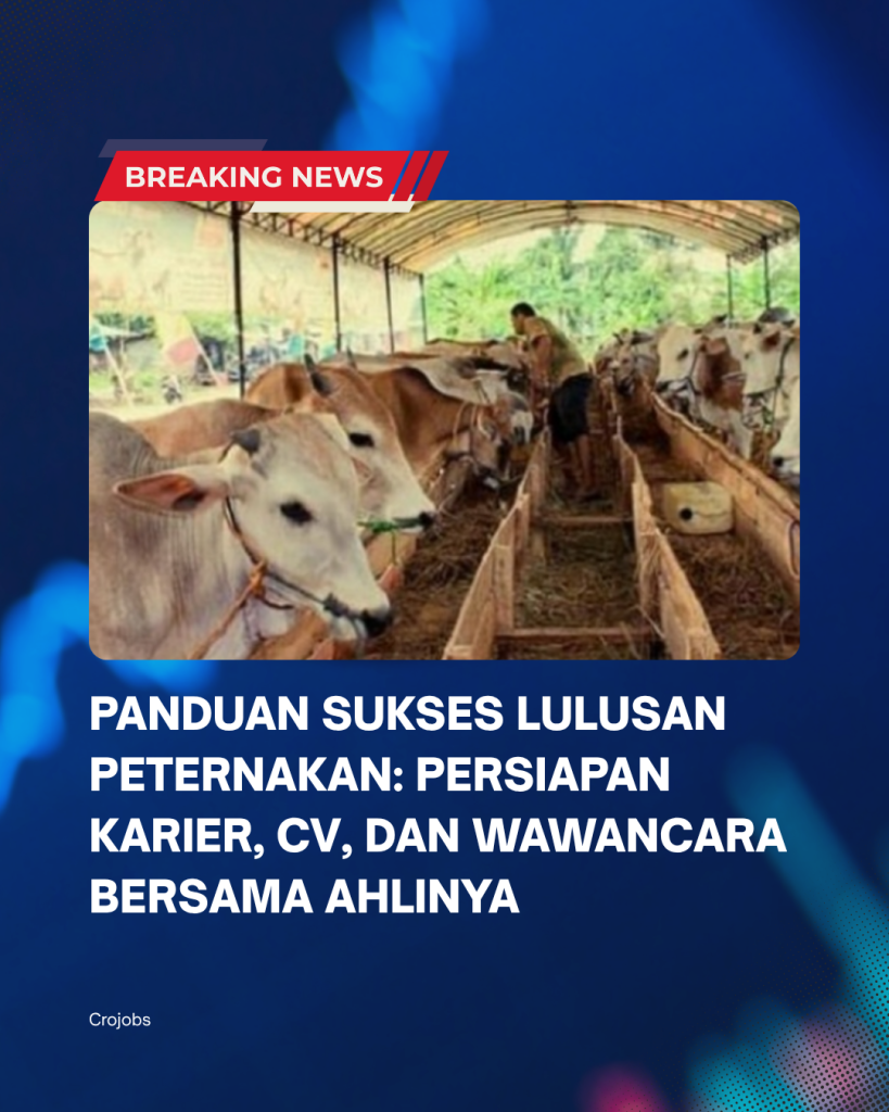 Sebagai salah satu bidang penting dalam sektor pertanian, dunia peternakan menawarkan banyak peluang, mulai dari industri pakan, produksi ternak, agribisnis, hingga riset dan teknologi pangan. Sayangnya, tidak sedikit lulusan yang masih kebingungan menentukan arah karier, belum tahu cara membuat CV yang kuat, atau kurang siap menghadapi wawancara kerja. Klik Disini