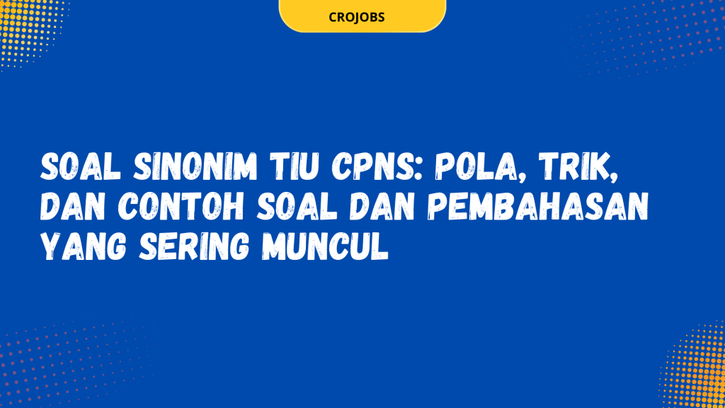 Artikel ini akan membahas secara lengkap pola soal sinonim TIU CPNS, trik mengerjakan, kesalahan umum, serta contoh soal beserta pembahasannya agar kamu lebih siap menghadapi ujian. Kamu bisa join kelas Gratis CPNS 2026 di Crojobs dengan klik disini atau kamu bisa konsultasi gratis disini.